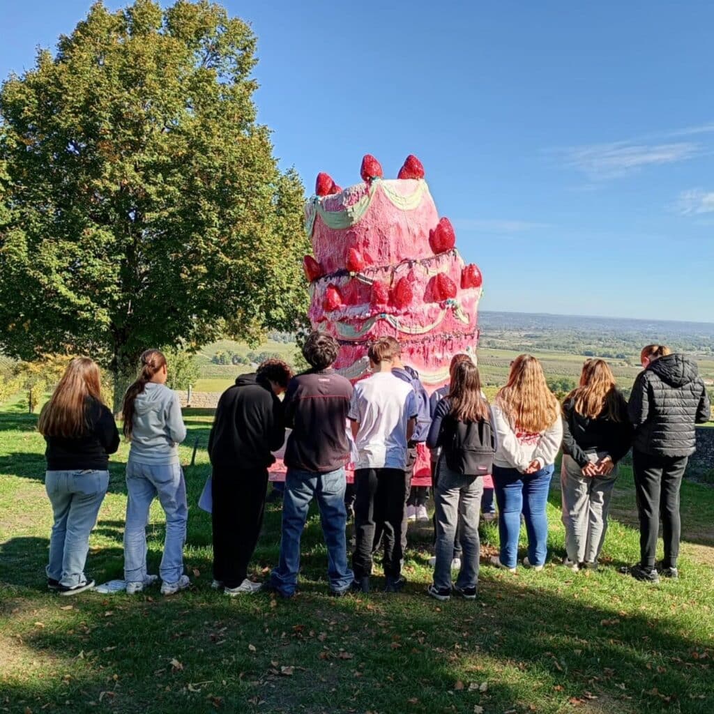 Accompagnés de leurs professeurs Mme Cassant, M. Naissant, M. Prépoint, ils sont allés à Mauzac, Monbazillac, La Force, Prigonrieux et Bergerac (musée du tabac) admirer des œuvres éphémères présentées par des guides passionnées et disponibles pour répondre aux questions.