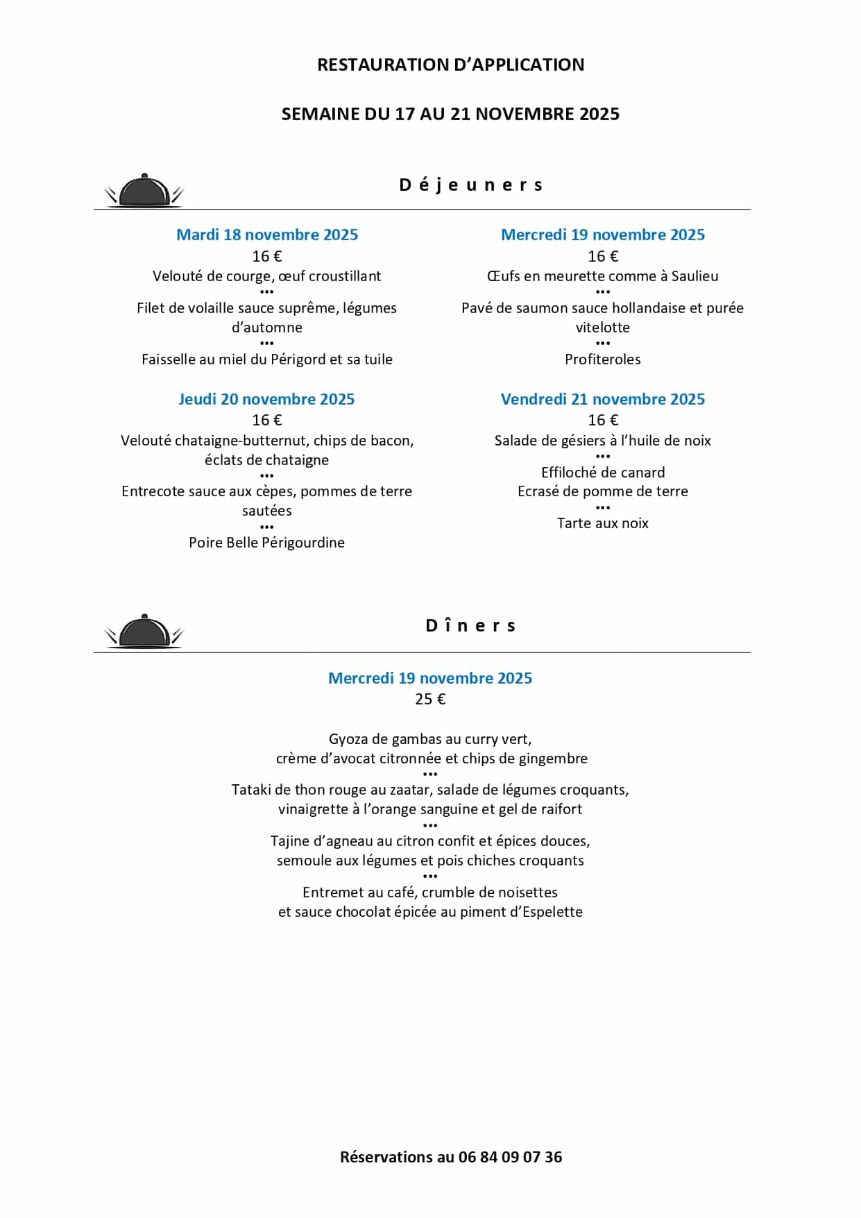 Les menus sont consultables ici : https://lyceejeancapellebergerac.fr/restaurant-dapplication/